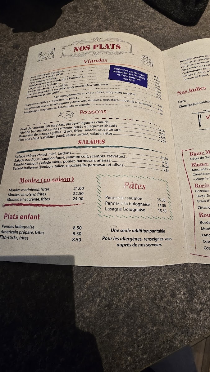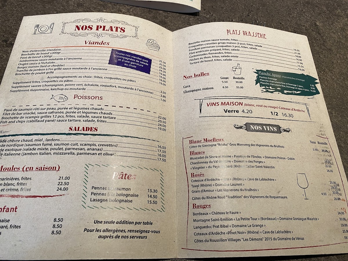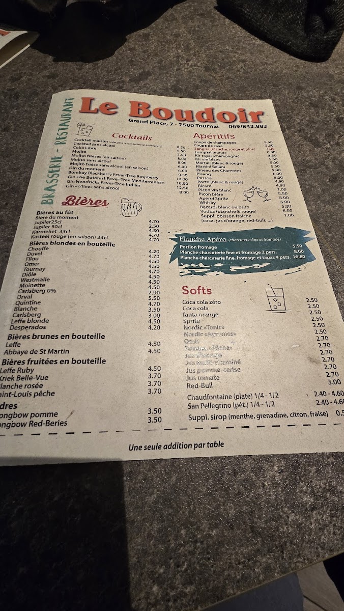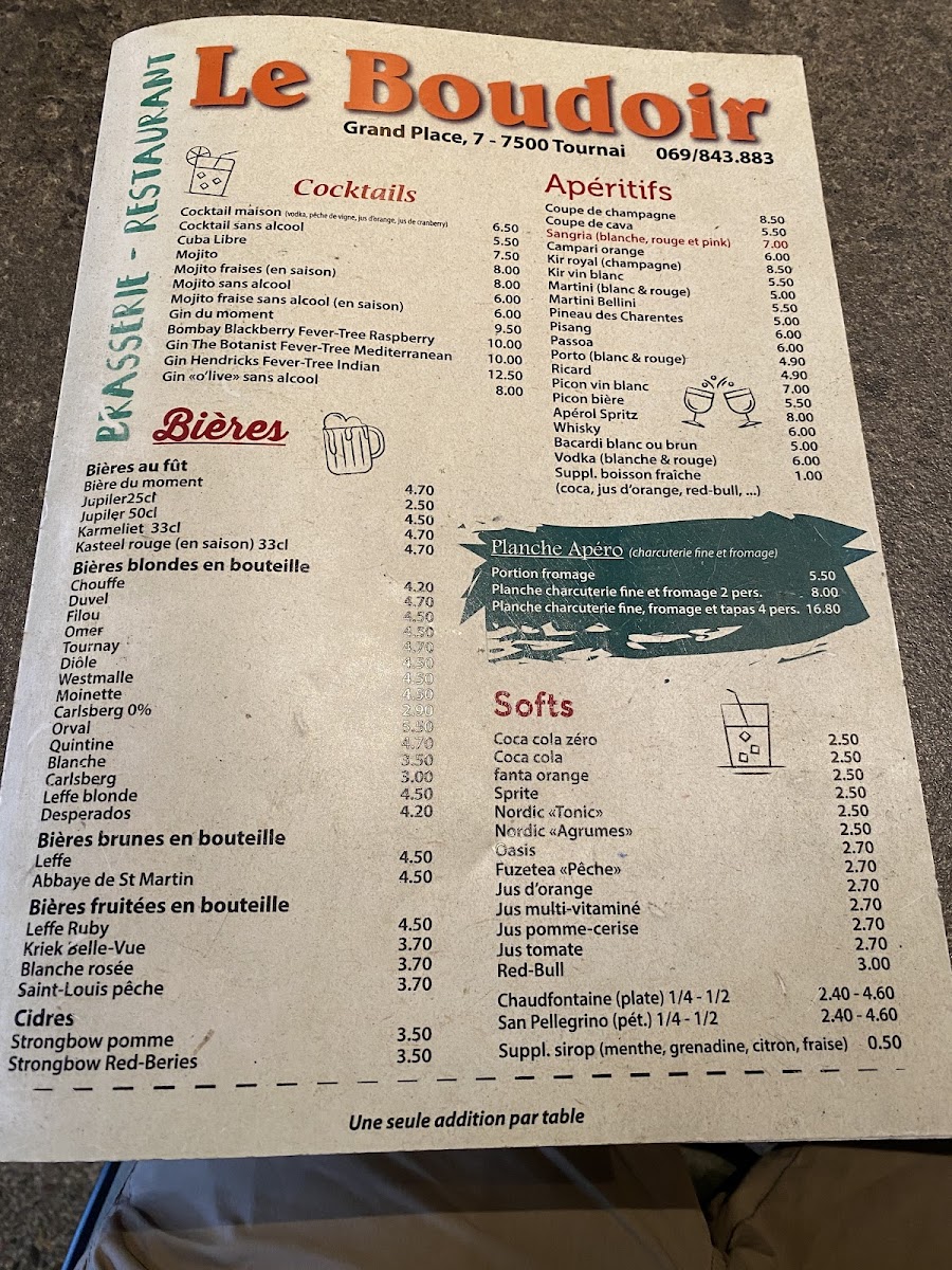 From a reviewer’s perspective, the menu at Le Boudoir offers a well-balanced selection that blends hearty classics with comforting flavors, making it a satisfying choice for a wide range of diners. The Steak BBB stands out as a highlight, delivering a rich, flavorful experience that reflects the kitchen’s attention to quality ingredients and careful preparation. Equally enjoyable, the Brochettes de Poulet provide a lighter yet still savory option, with tender meat and well-seasoned accompaniments that make the dish both approachable and memorable. Overall, the menu feels thoughtfully composed, offering generous portions, familiar Belgian-inspired dishes, and a few standout specialties that leave a lasting impression. As a conclusion to the dining experience, the menu succeeds in combining comfort, flavor, and consistency, making Le Boudoir a reliable and enjoyable place for a satisfying meal in the heart of Tournai.